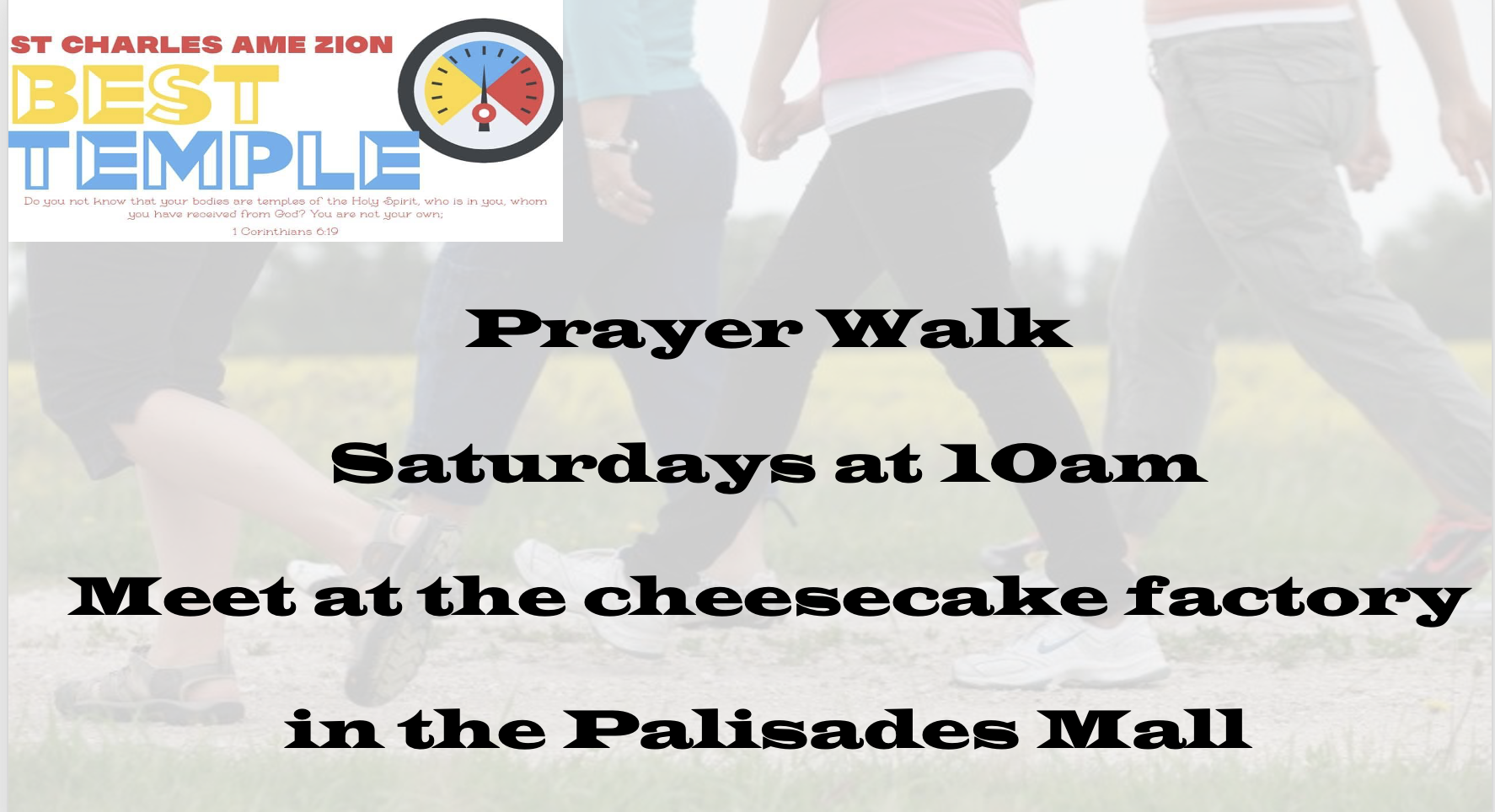 Join us Saturdays for our Prayer Walk. Meet us at the cheesecake factory in the Palisades Mall